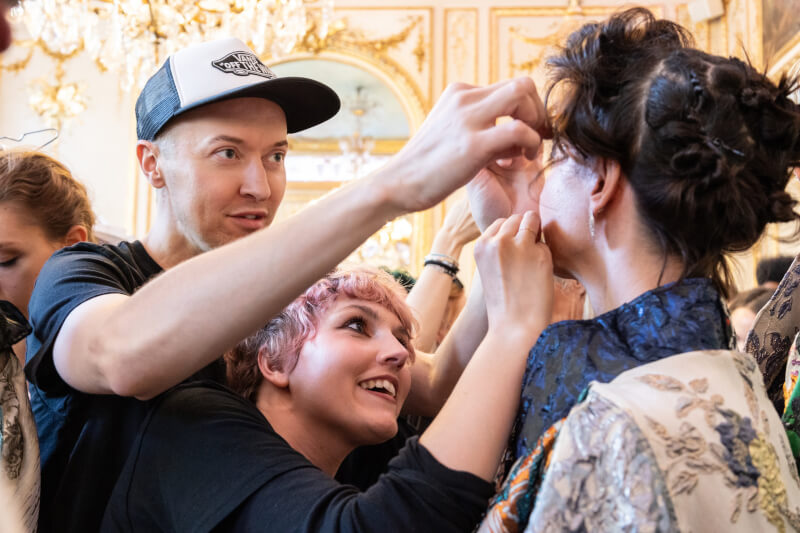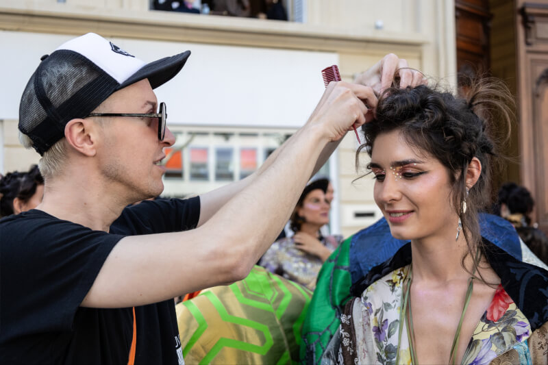 Lavan takana häärää pieni joukko suomalaisia kauneudenalan ammattilaisia. Nuvon Tom on juuri viettänyt edellisen viikon työn parissa Milanossa ja on nyt saapunut Pariisiin jatkamaan. Tomille näytös on siitä ilmeisen tärkeä, että hänen vastuullaan on näytöksen hius- ja meikkilookit, joita hän on tullut Pariisiin Nuvon Artist Teamin kanssa työstämään. Assistenttina toimii taasen Nuvon Linnéa, jolla on malleja vilisevässä takahuoneessa kädet täynnä lakkapulloja mallien asettuen line-upiin ja valmistuen encoreen.